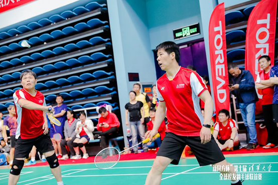 今年是環境學院首次全部由環境校友組隊參賽,15名隊員平均年齡44歲,年齡最大的李京峰老師雖65歲依然靈活矯健不輸少年;中年隊員則以溫宗國、岳東北兩位身擔工作重任依然常年堅持打球的學院教師為代表;年齡最小的崔琦則剛邁出校門兩年多,工作鍛煉兩不誤。張宏亮、唐紅萍、付雷、陳大揚、賈建麗、張志強、杜兵、李福志、張麗萍、陳湛等校友也在比賽中努力拼搏。老、中、青三代環境校友與全校羽毛球校友歡聚一堂,以球會友,展現出了優秀的環境體育精神,完美詮釋了“為祖國健康工作五十年”的清華體育精神。